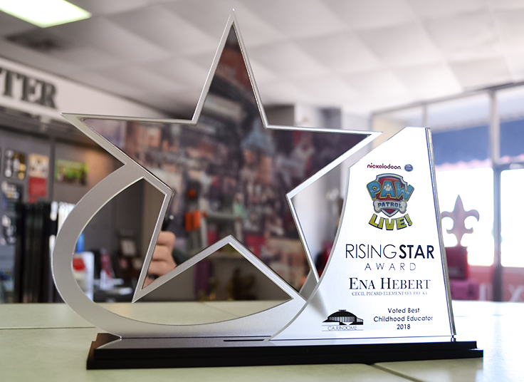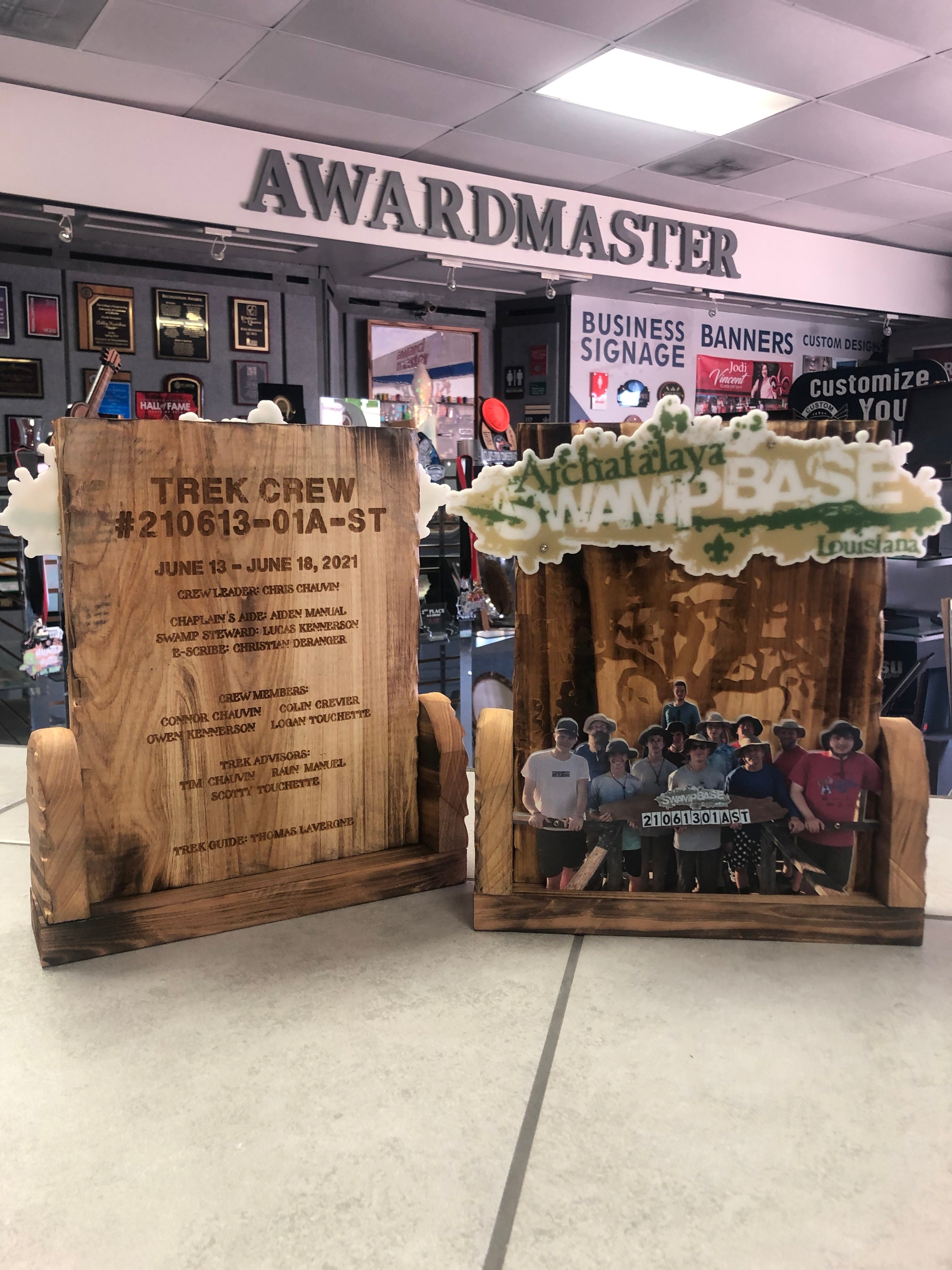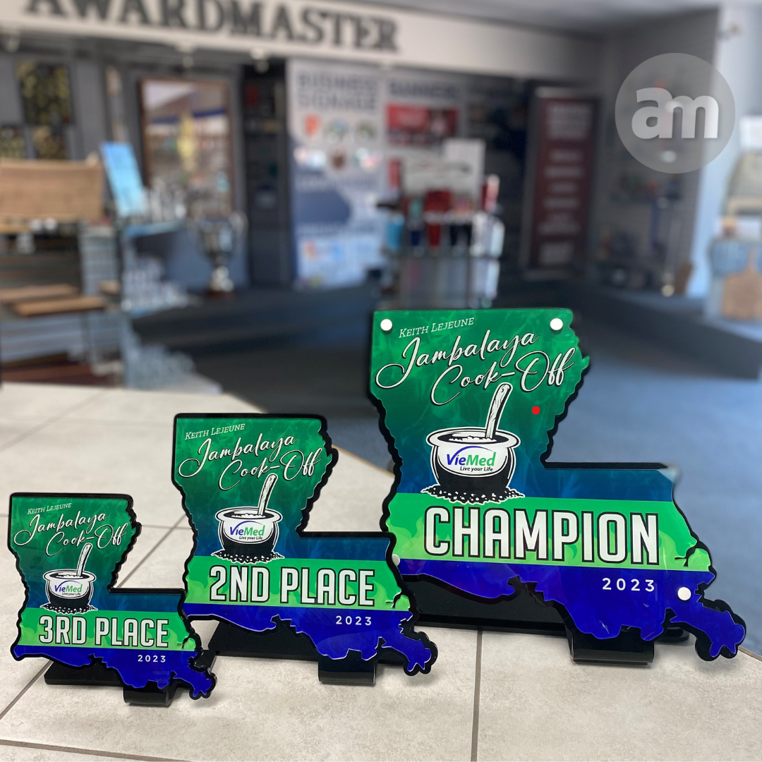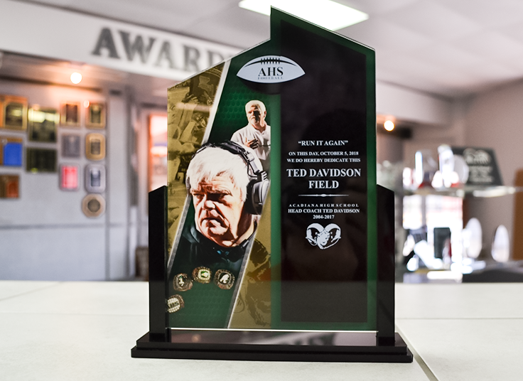 Your custom award is assembled by our team of production associates right here in Lafayette, LA. Our production managers oversee the manufacturing of every award to assure that every piece holds up to our accuracy and precision standards.