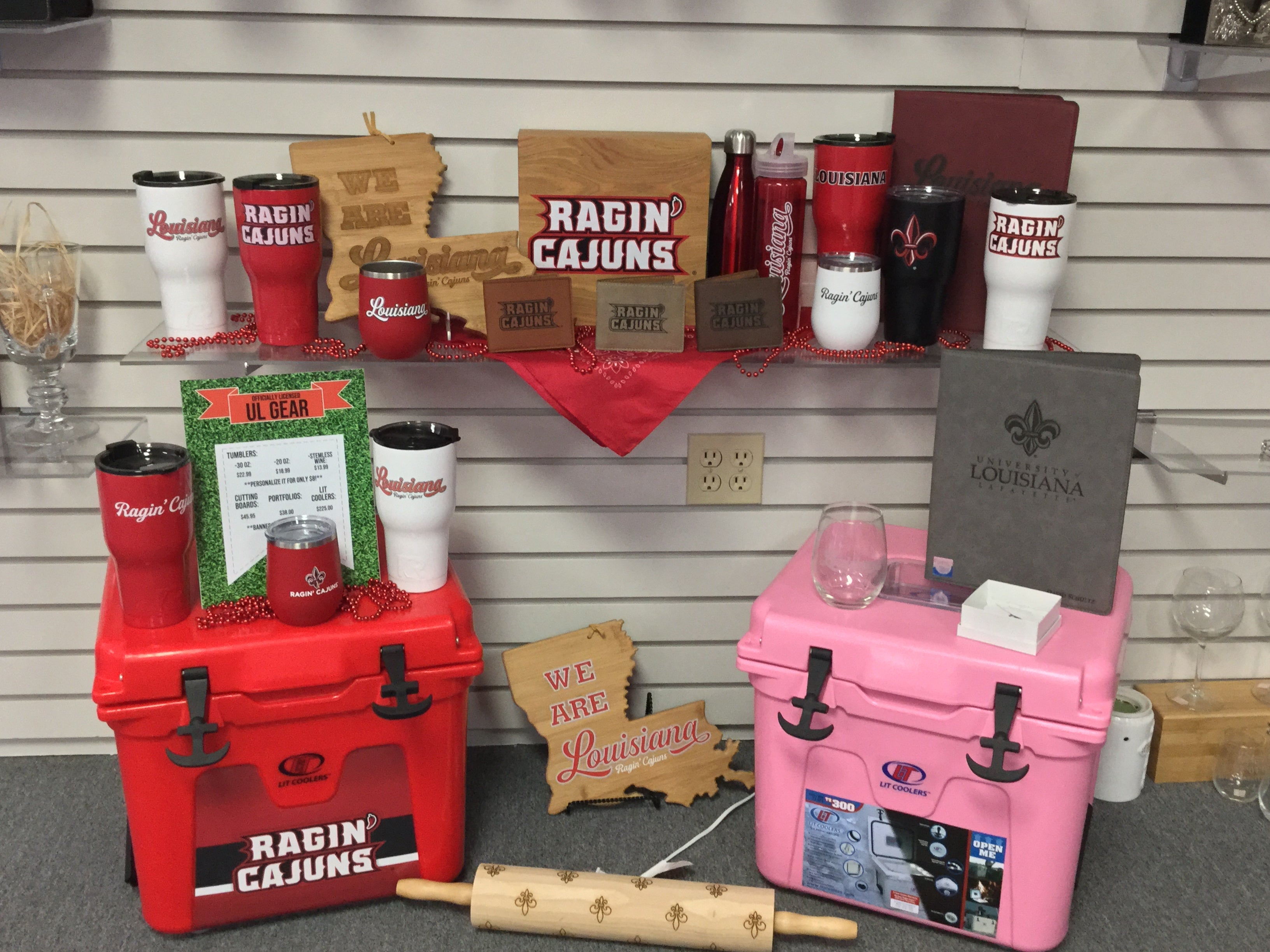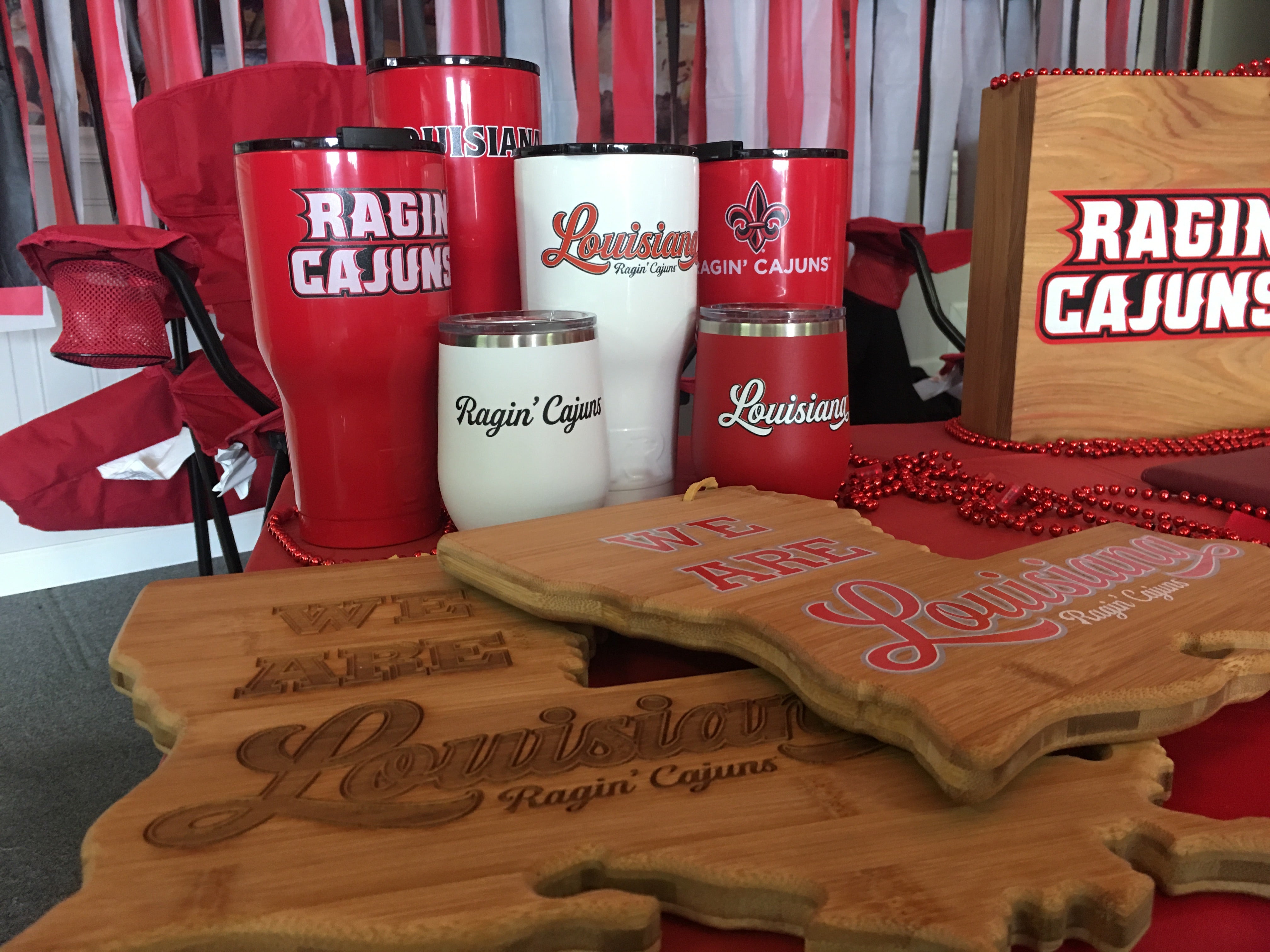Calling all Ragin Cajun Fans! We love showing our Cajun spirit and want to help you show yours! We are officially licensed by the University of Louisiana and every purchase you make with us, a portion of it goes to supporting our home town University! If you don’t see something what you are looking for, odds are we can make it happen for you, just ask!
