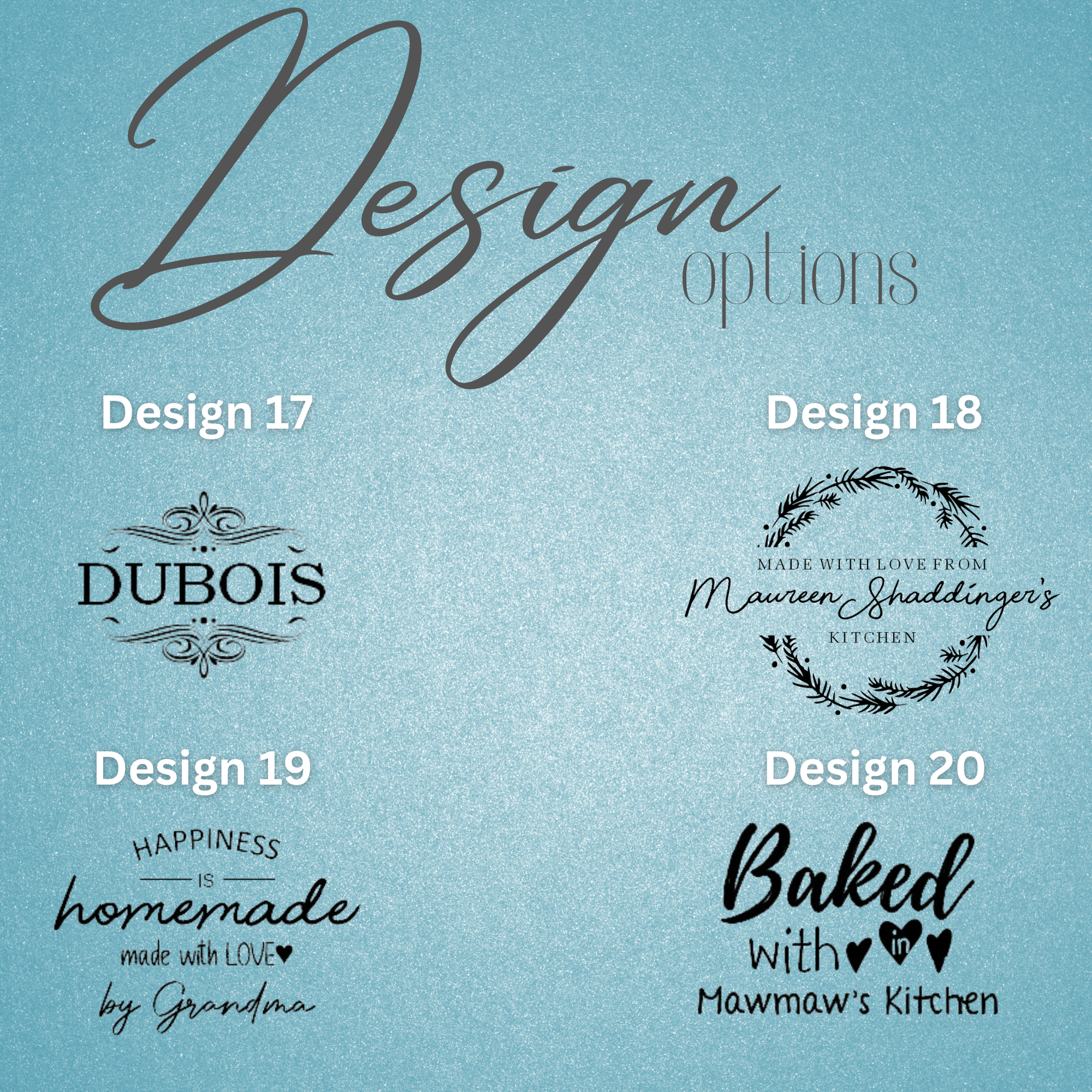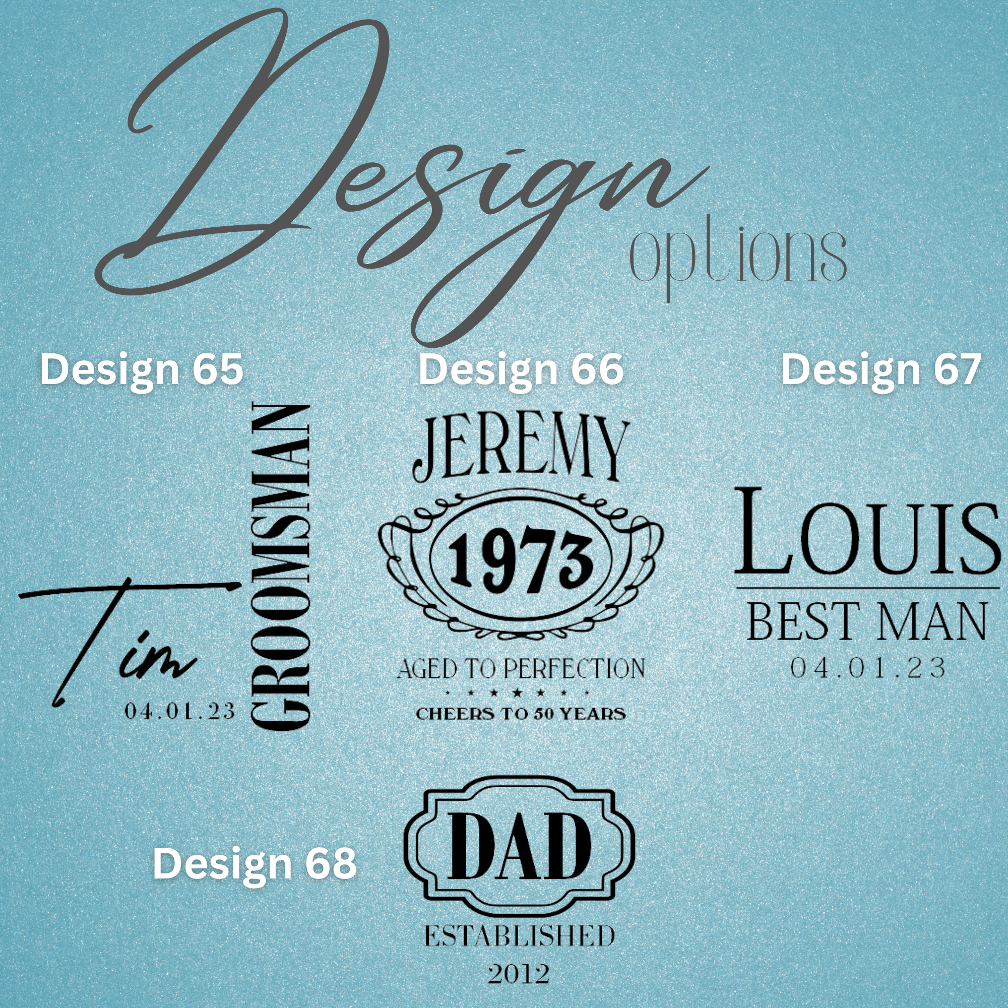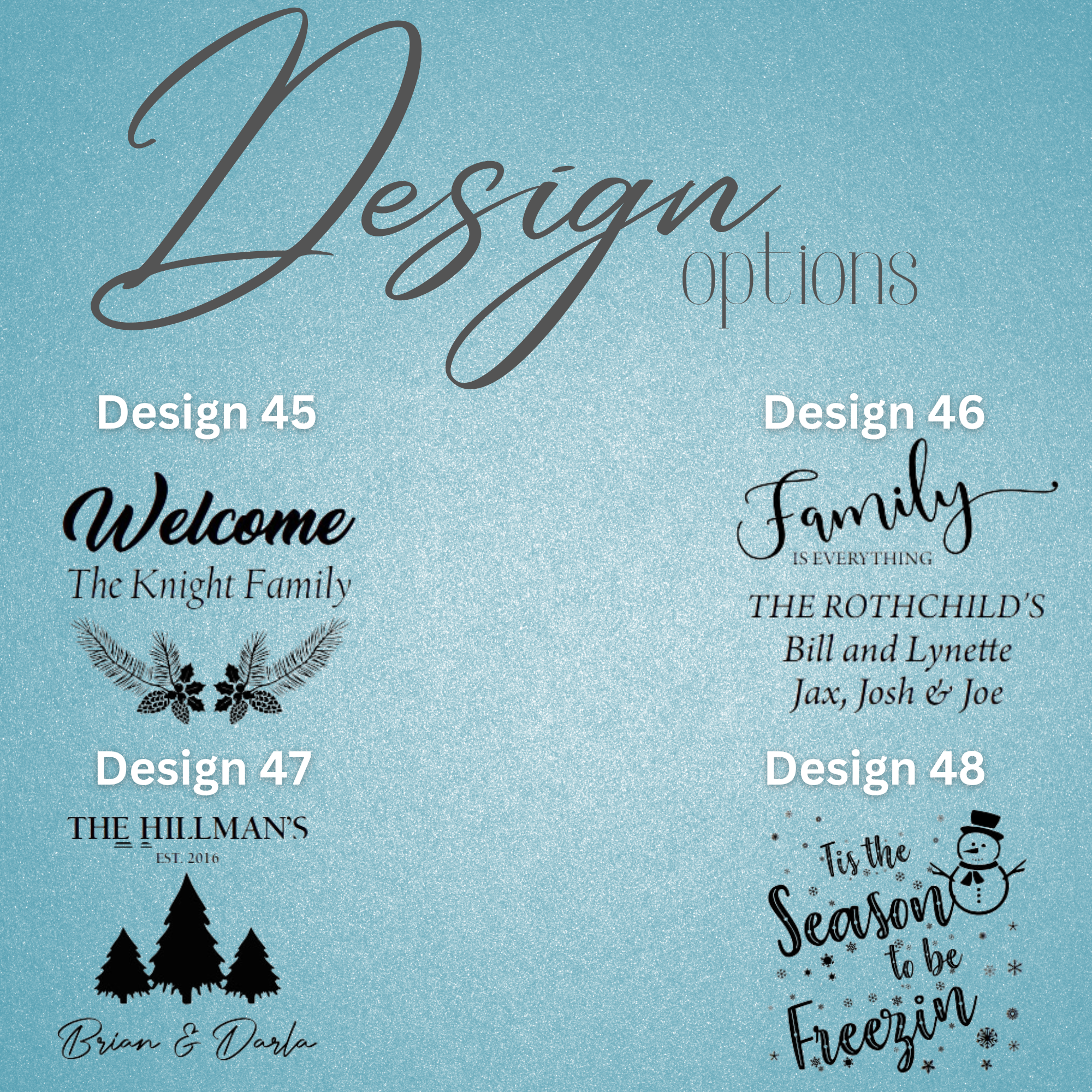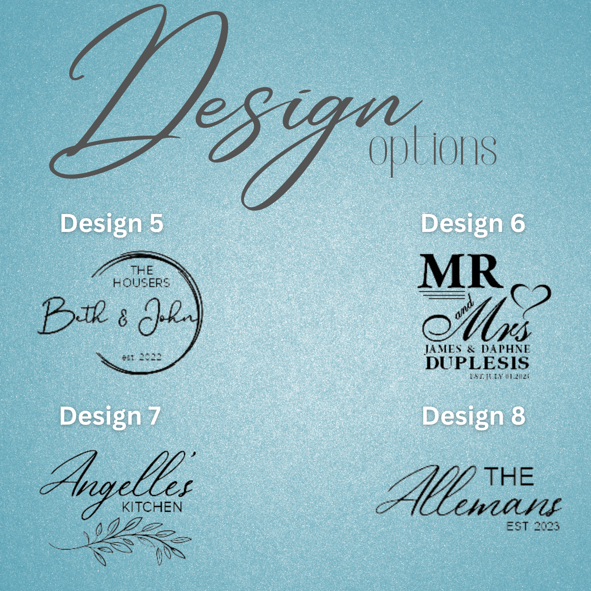 Choose from any of the font, monogram or premade design options listed and include your choice information in the personalization field when making your selections.