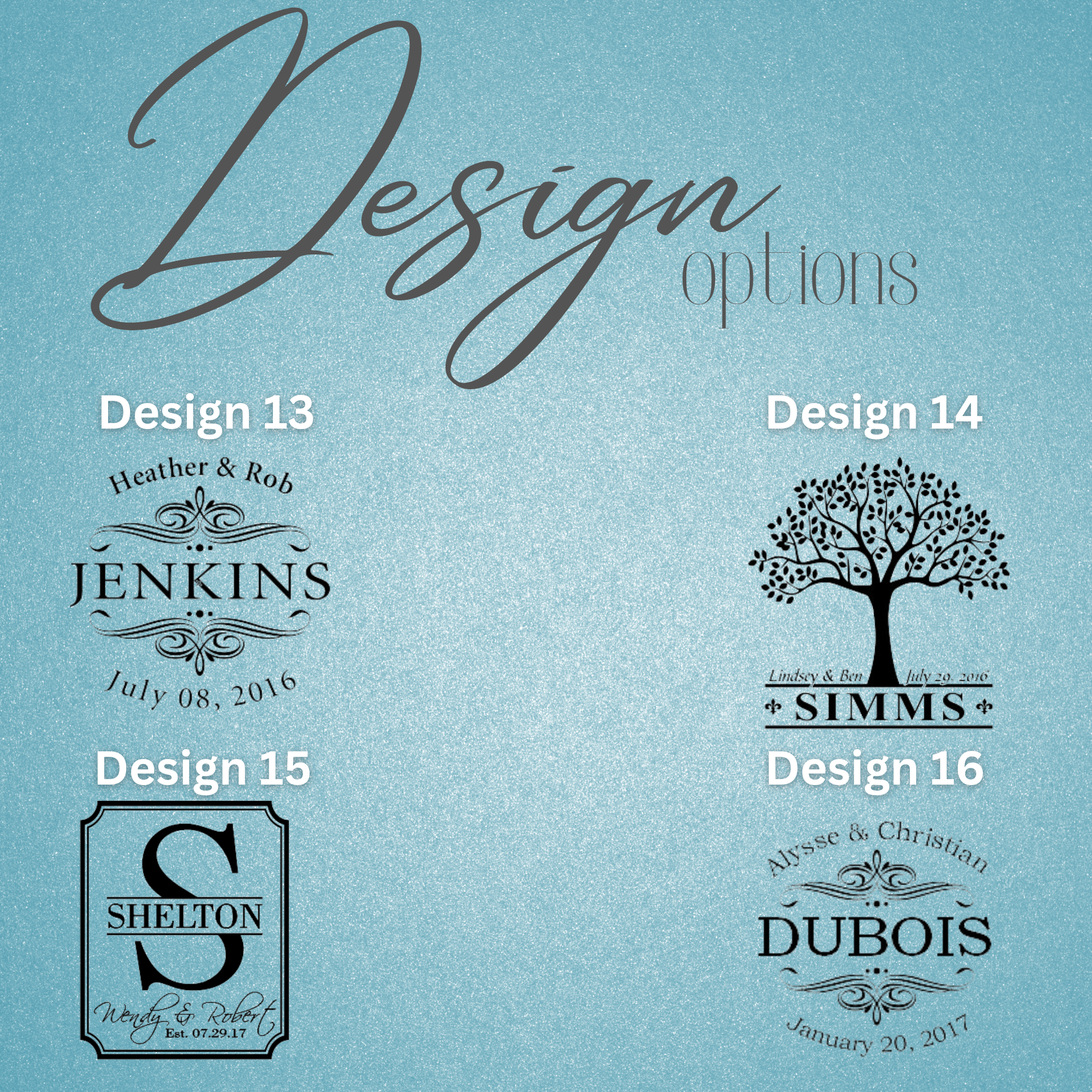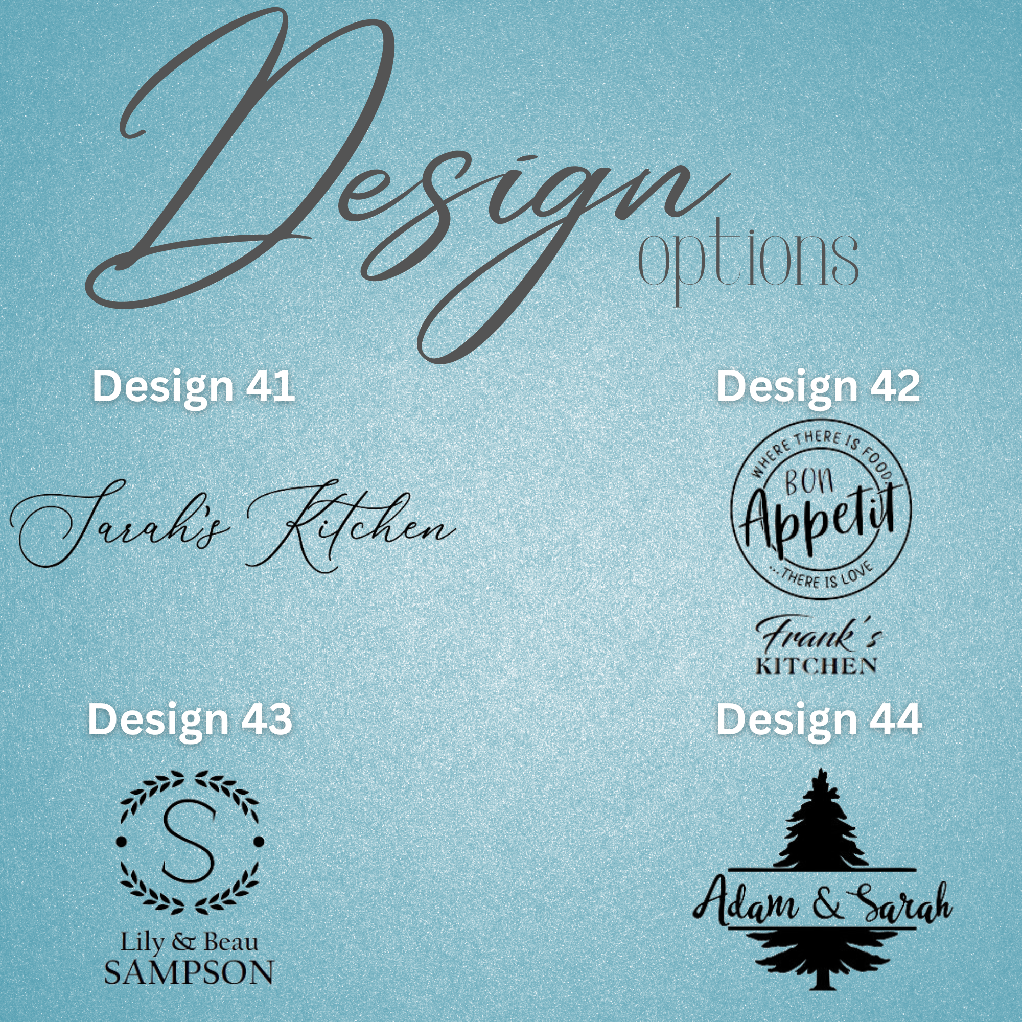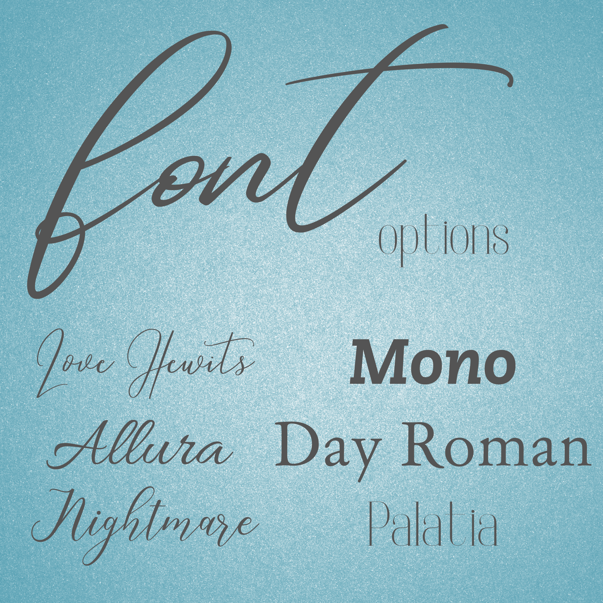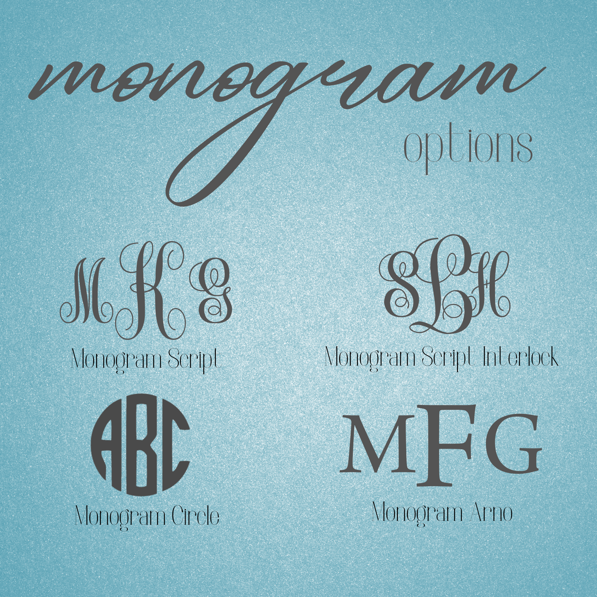 Choose from any of the font or monogram listed and include your choice information in the personalization field when making your selections.